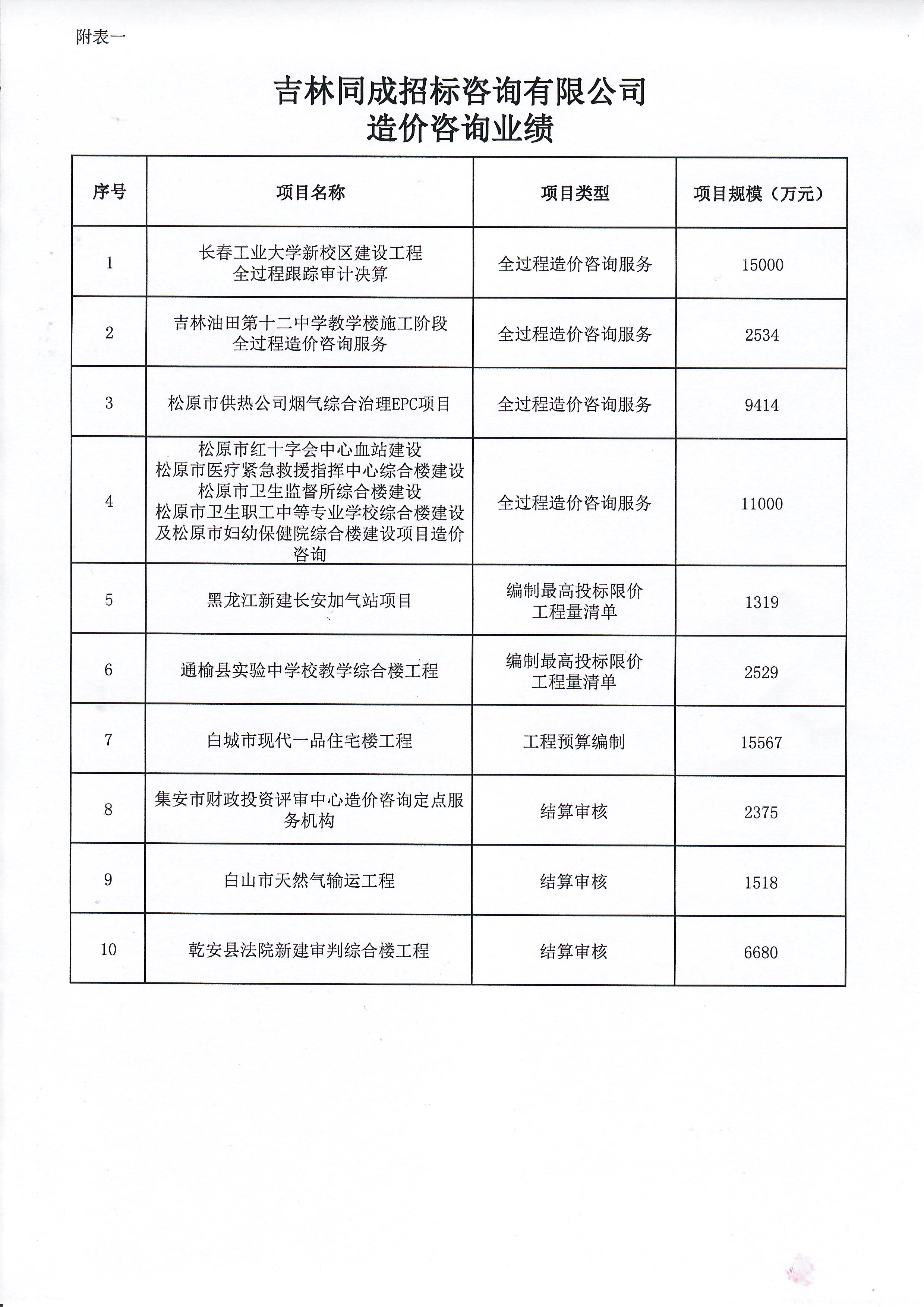 工程建設(shè)項(xiàng)目咨詢(xún)業(yè)績(jī) |